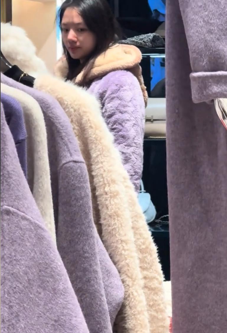 有网友偶遇回澧县老家过年的任敏,穿着厚实臃肿的湖南“省服”,踱着步在商场里闲逛。